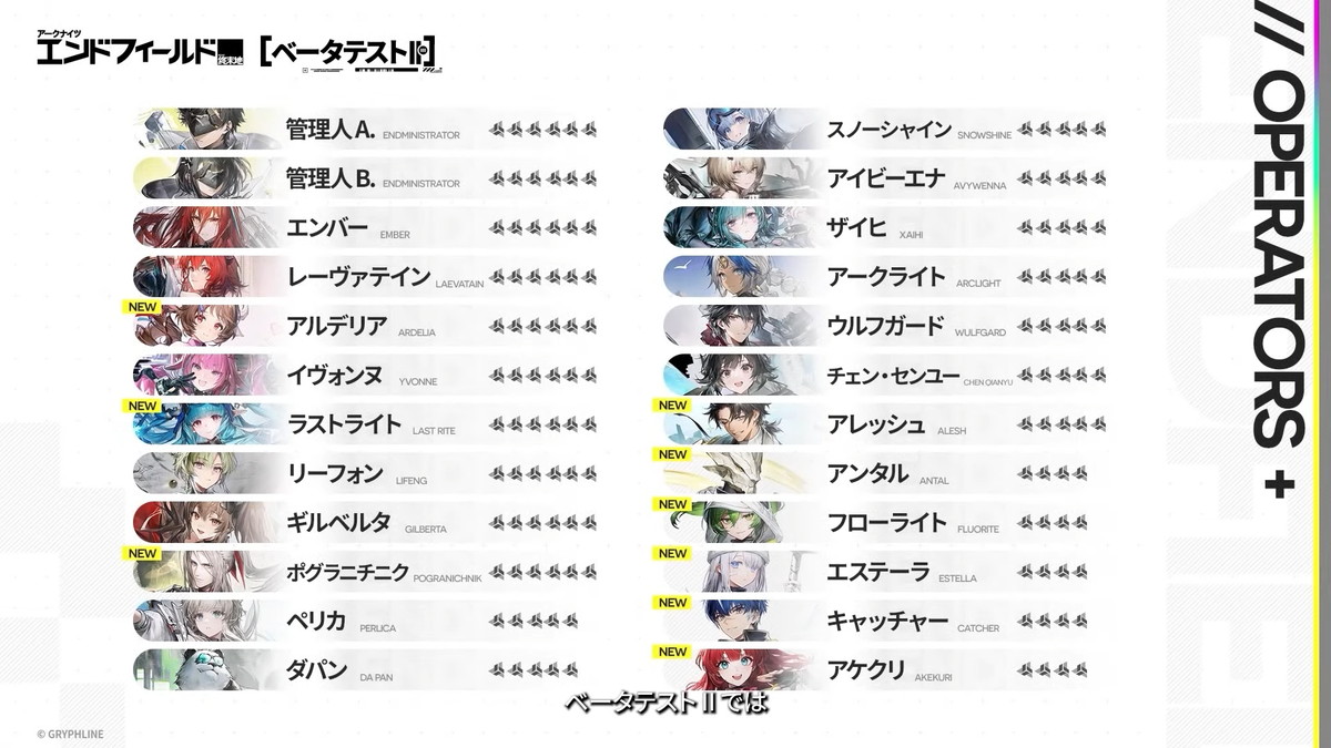 ベータテストⅡで使用することができるオペレーターがグッと増加。