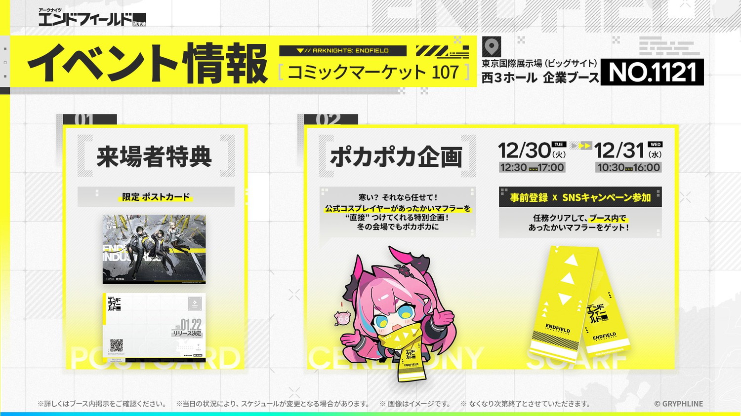 「アークナイツ:エンドフィールド」が初めてのコミックマーケット(冬コミ-C107)への出展を発表した。