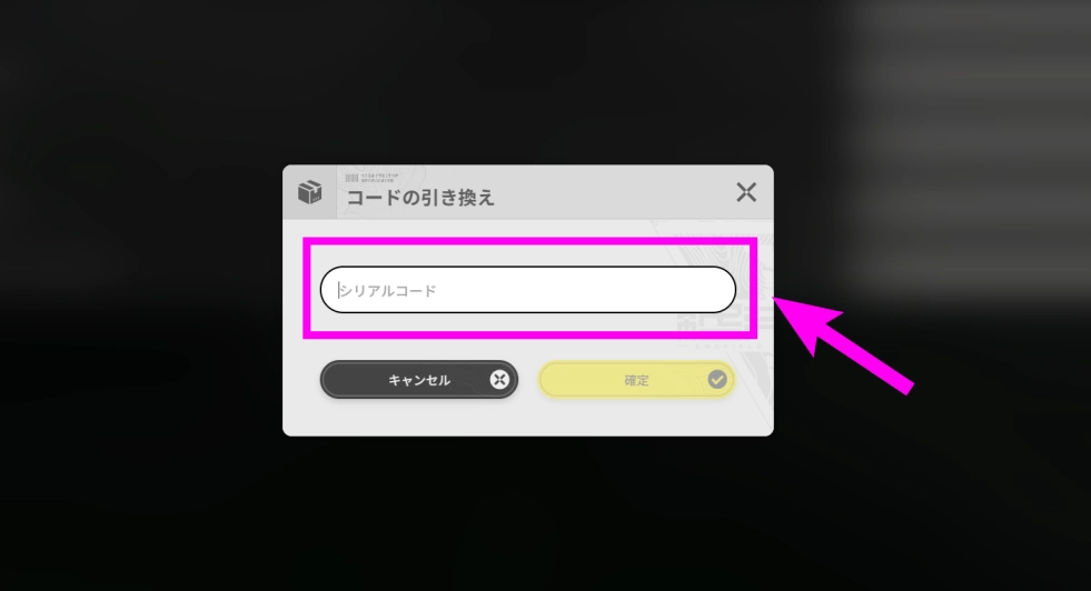 シリアルコードの入力はゲーム内から行う。