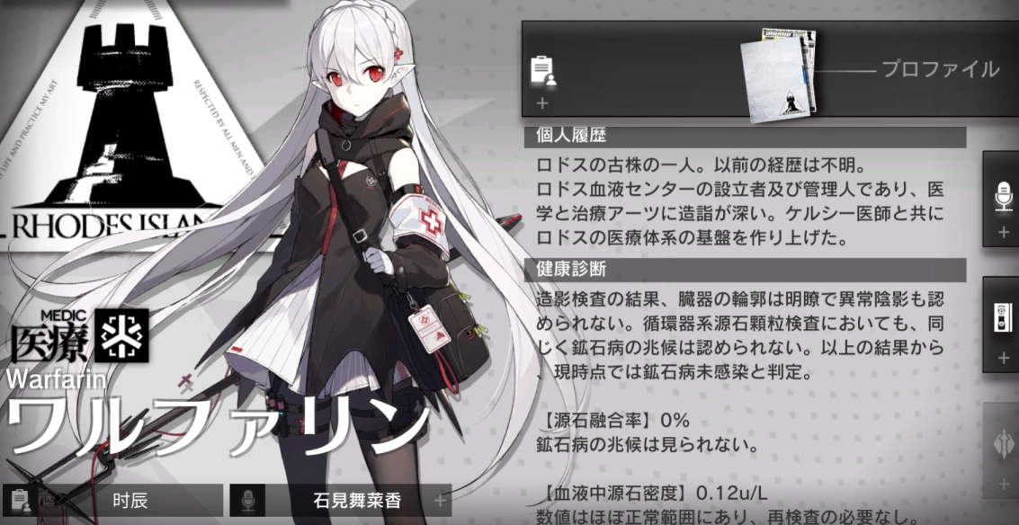 ワルファリンはロドスの医療班古株として長く携わってきた存在であり、サルカズ族のブラッドブルードという長命種なためエンドフィールド世界でもその存在がロドスと共に示唆されている。