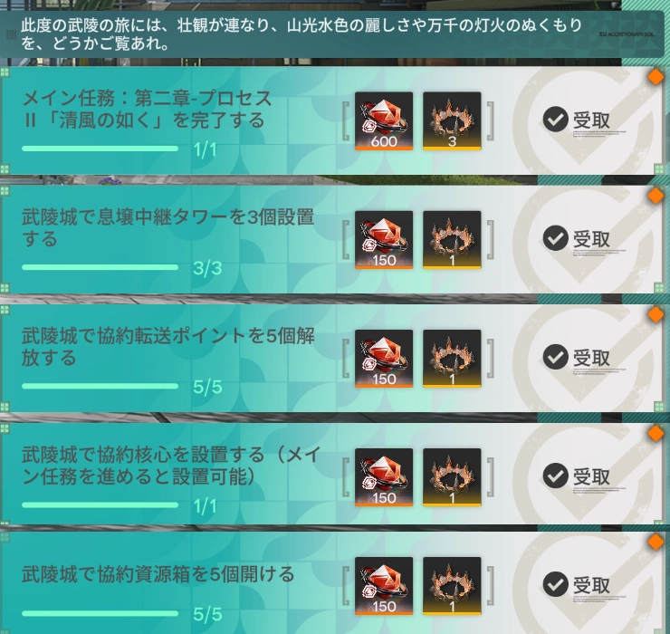 メイン任務第二章プロセスⅠ「武陵城へと」を完了