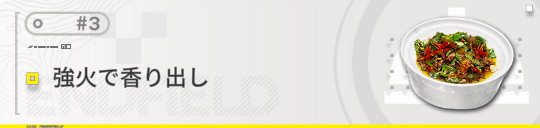 | 角切り肉の辛炒め | 強火で炒められた角切り肉。一口食べただけでご飯が止まらなくなる。この料理が開拓エリアで最も人気な料理ということに疑いの余地はない。 |