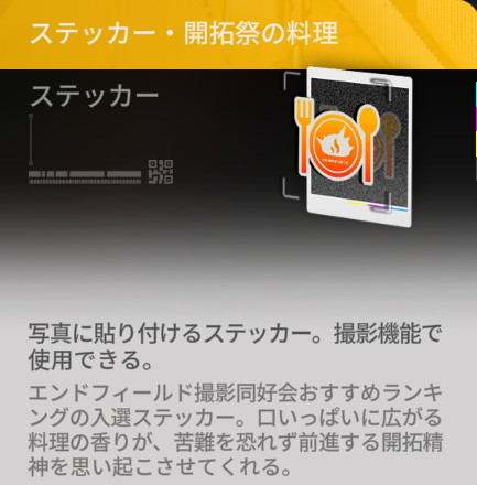 物資配給任務をクリアすると「ステッカー・開拓祭の料理」「赤晶玉」「存続の痕跡」「上級認識媒体」などが報酬として獲得可能