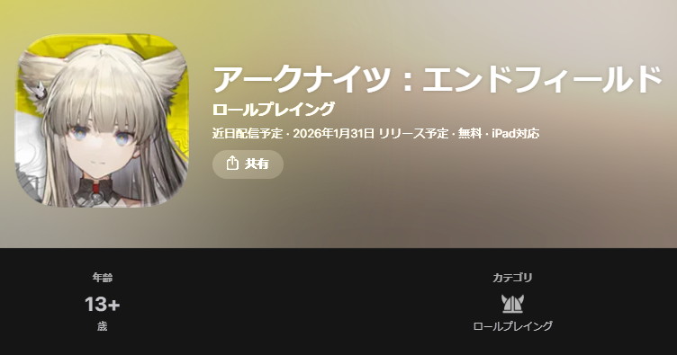 さらにその後、AppStoreのエンドフィールドのストアページが公開され、そこには2026年1月31日リリース予定であると記載されていた。(リンク先参照)