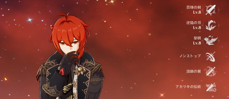最低限の育成として主力のキャラと武器のレベル80以上、主要な天賦はレベル8程度、聖遺物は少なくともメインステータスは必要なものを揃えて強化したい。