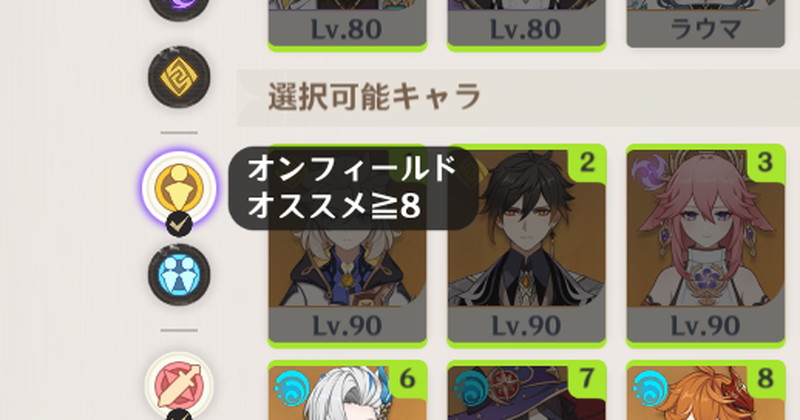 メインアタッカーは「オンフィールドキャラ」として編成画面で確認できる。
