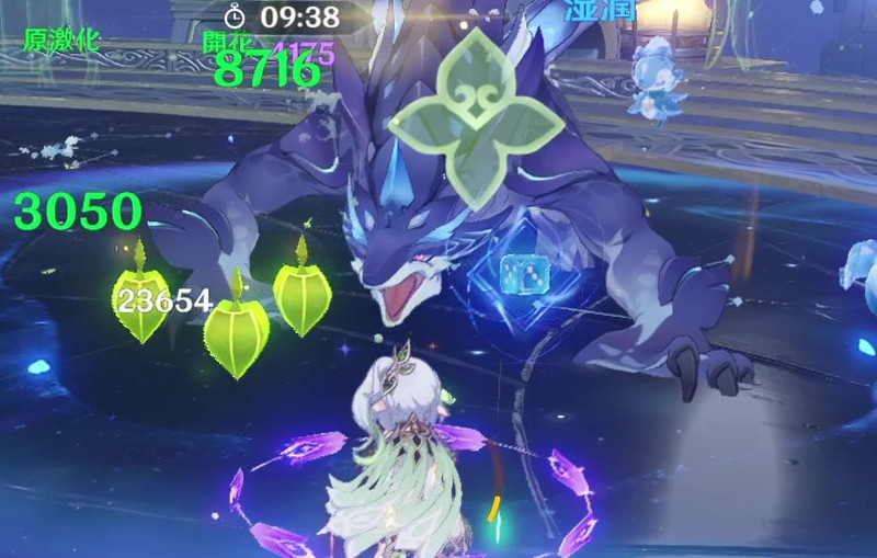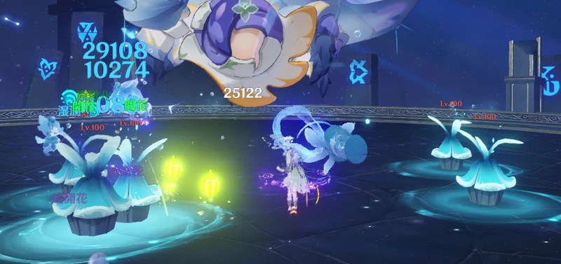 床に水のエリアが出現し、範囲内は元素エネルギーとHPが減少してしまうので注意。