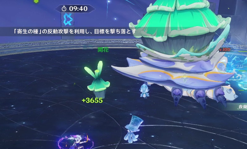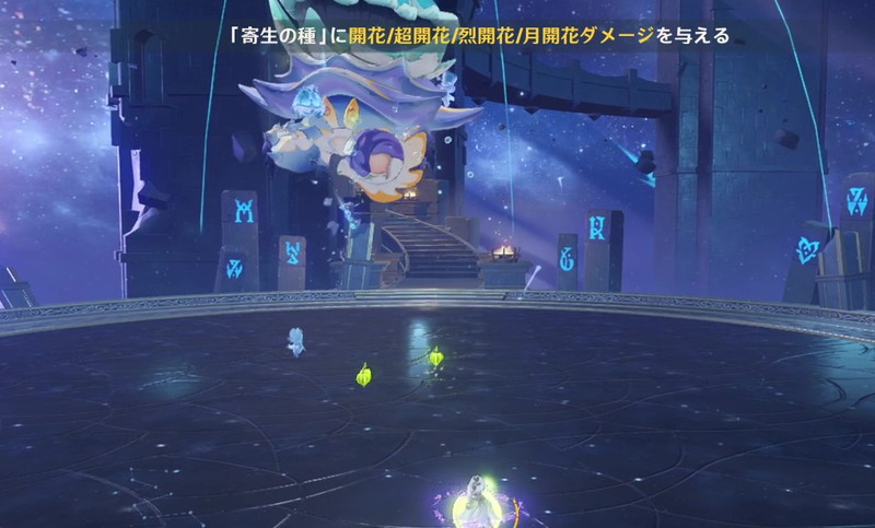 床に出てくる寄生の種に開花ダメージを当てると、種が飛んで行って白ゲージを削ってくれる。